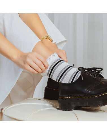 Sind sie nicht süss, die im Bund gehäkelten Socken "Crochet Lece Ribbed". Durch das Baumwoll-Mischgewebe weisen die Socken einen hohen Tragekomfort auf, sind formstabil und überstehen viele Waschgänge.