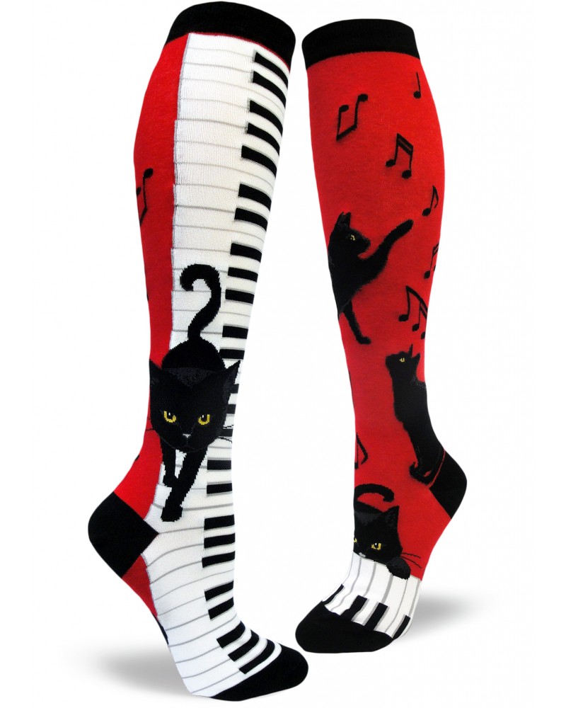 Die Socken sind ein ideales Geschenk für alle Katzen-Liebhaberinnen und Piano-Fans.