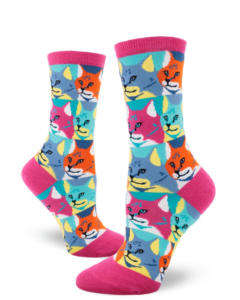 Die Socken sind ein ideales Geschenk für alle Katzen-Besitzernnen und Popart-Fans.