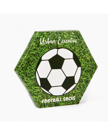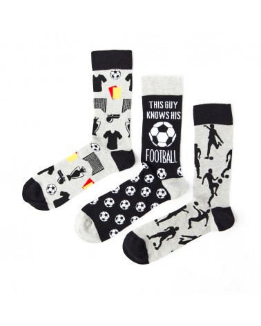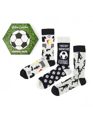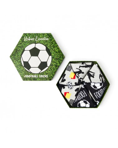 Die Orginelle Verpackung beinhaltet drei Paar Socken mit Fussballmotiven.