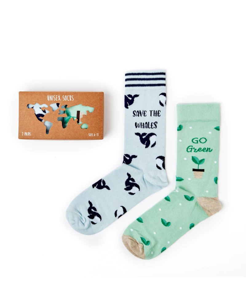 Du suchst nach einem originellen Geschenk für Umweltschützer? Dann ist unser Geschenk-Set "Save the World" einfach perfekt. Es beinhaltet zwei Paar Socken zum Umweltschutz, schön verpackt in einem Karton. Bekenne Farbe!