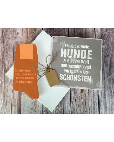 Mit unserem originellen Geschenk-Set "Es gibt so viele Hunde auf dieser Welt und ausgerechnet wir haben den Schönsten" machst du jeder Hunde-Besitzerin und -Besitzer das perfekte Geschenk.