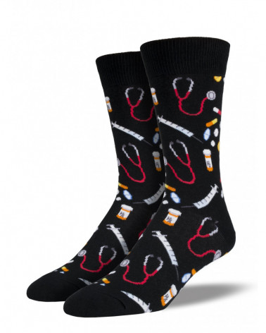 Du bist Arzt, Krankenpfleger oder einfach erklärter Hypochonder? Dann müssen unsere Socken "Meds" mit Stethoskop, Pillendose, Spritze und Co. unbedingt an Deine Füsse.
