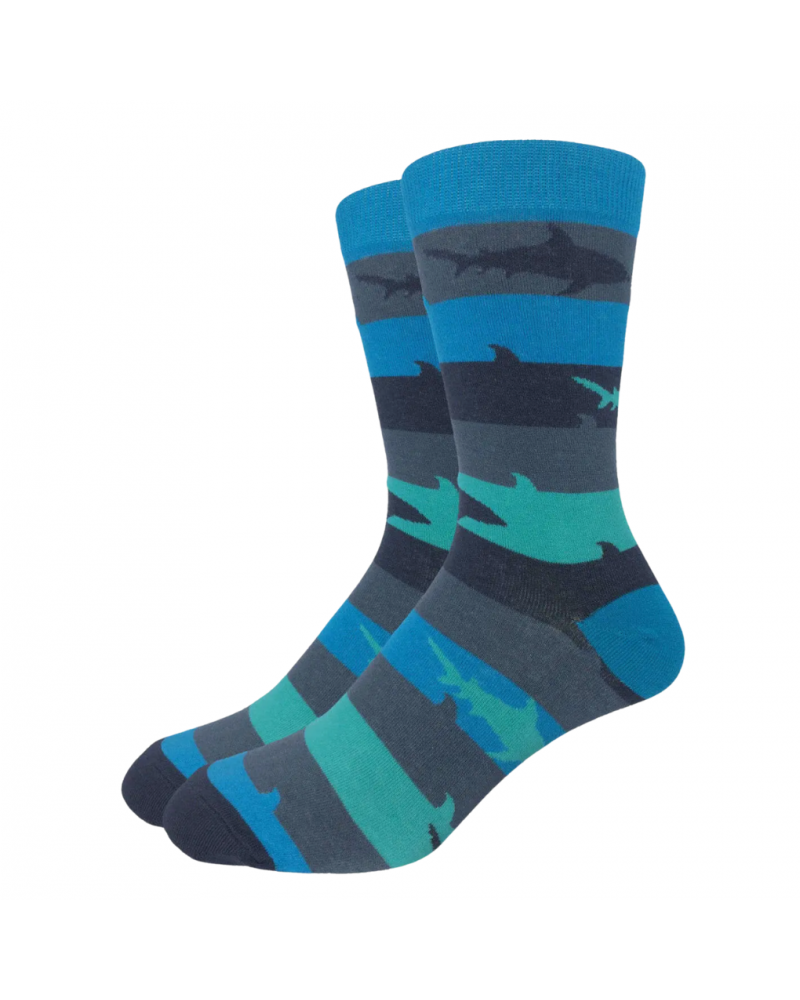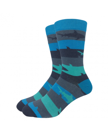 Es gibt kaum einen sympathischeren und ungefährlicheren Auftritt einer Hai-Attacke, als diese stylischen Socken "Aqua Shark Week".