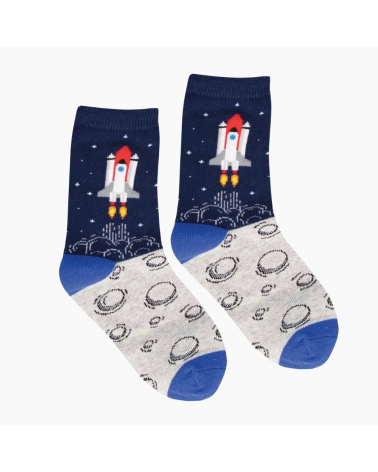 Süsses Weltraum-Motiv mit Raketen, Mond & Sternen. Weiches, hautfreundliches Material für empfindliche Kinderfüsse. Bequeme Passform mit elastischem Bündchen. Atmungsaktiv & pflegeleicht. Formstabil & langlebig.