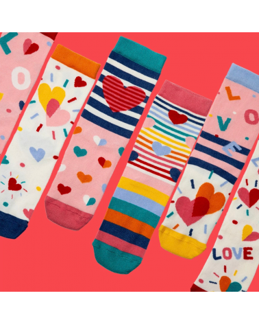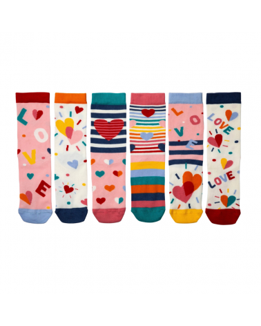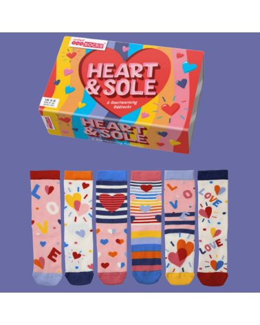 Warum nur ein Paar, wenn du gleich sechs freche Designs bekommst? Die HEART & SOLE Geschenkbox bringt Farbe, Spass und perfekte Geschenk‑Power in einem Paket – ideal, wenn du jemandem ein überraschendes Lächeln schenken willst.