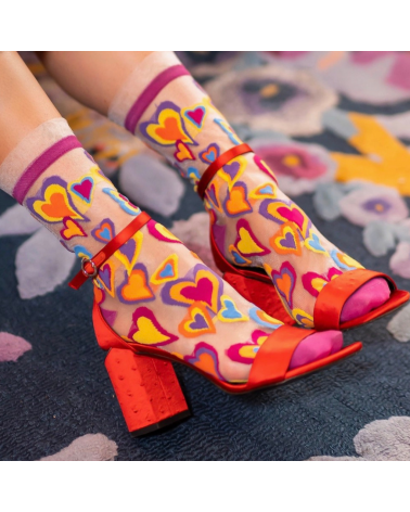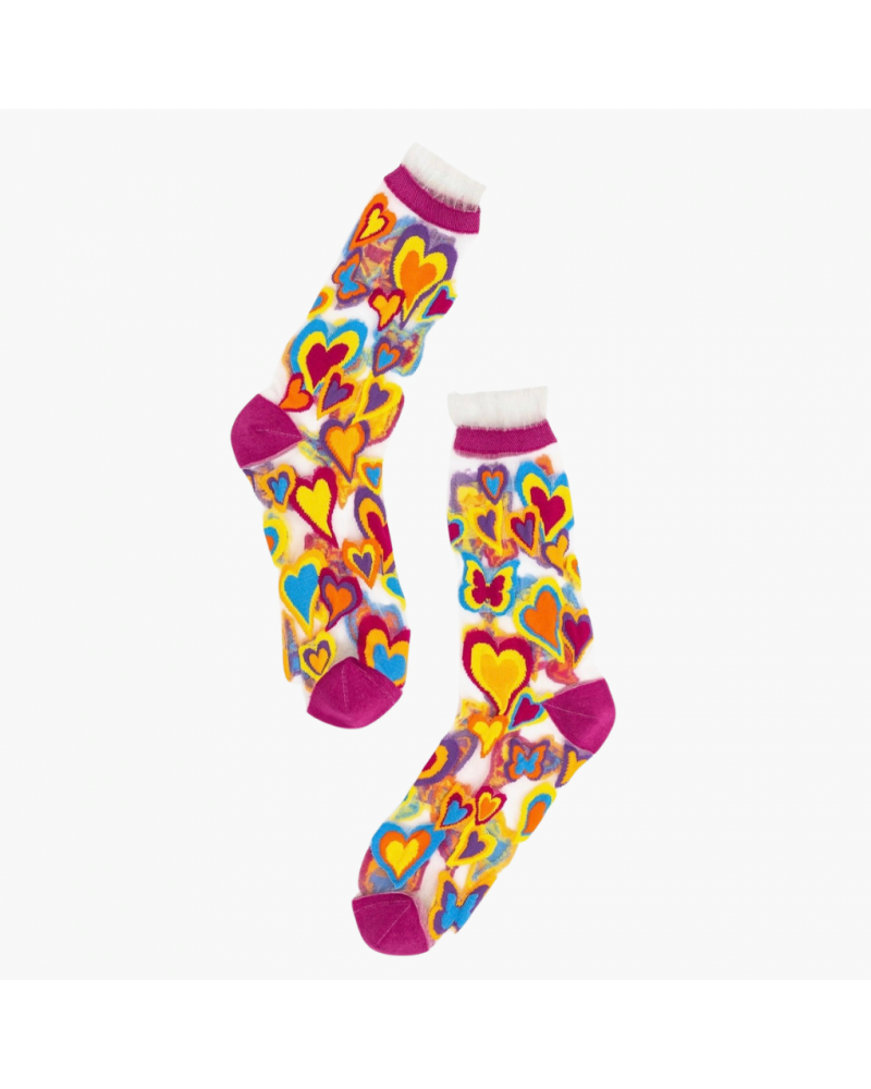 Zartes, transparentes Material – leicht, elegant & modern. Verspieltes Herz-Design mit romantischem Twist. Angenehm elastisch für eine bequeme Passform. Luftig & ideal für Sneaker, Loafer oder feminine Looks. Feines Bündchen – sanfter Halt ohne einzuengen.