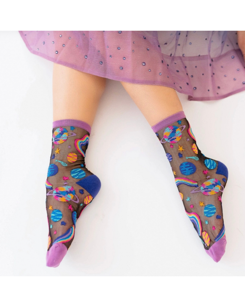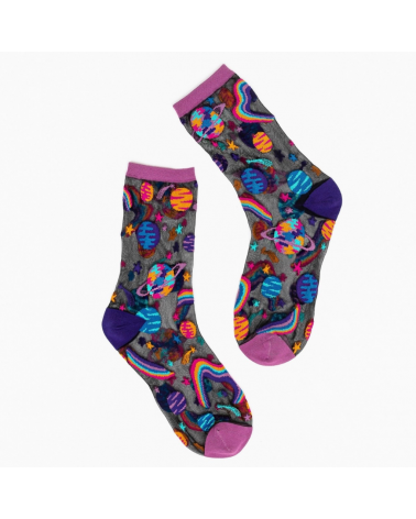Zartes, transparentes Material – luftig, feminin & modern. Verspieltes Peaceful-Planet-Motiv für positive Good-Vibes-Looks. Leicht elastisch für angenehmen Sitz ohne Druckgefühl. Atmungsaktiv & ideal für Sneaker, Loafer oder sommerliche Styles. Feines Bündchen – sanfter Halt mit elegantem Finish. Stylisches Accessoire für minimalistische & verspielte Outfits