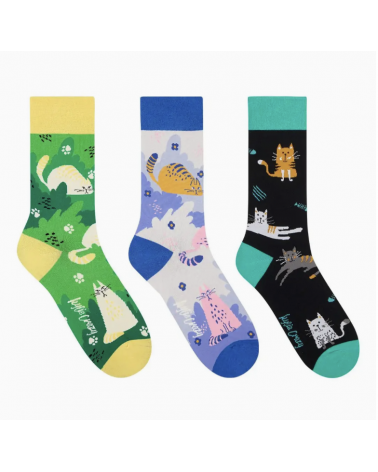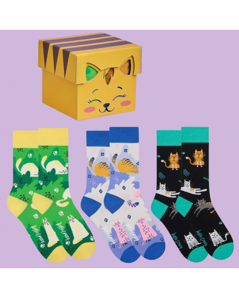 3 Paar Socken mit frechen Katzenmotiven – nichts für langweilige Tage