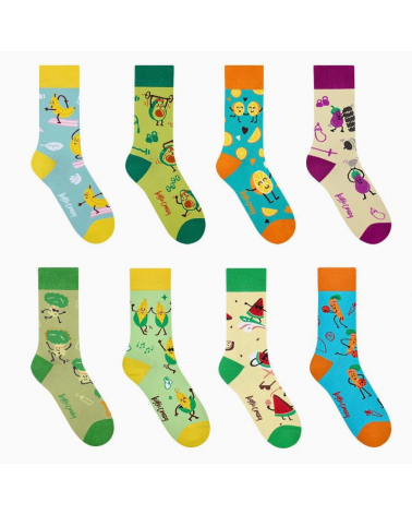 8 Paar Socken mit Obst- & Gemüse-Motiven – bunt gemischt & voller Charakter