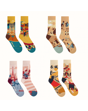 4 Paar Socken mit Monument-Designs – inspiriert von weltbekannten Sehenswürdigkeiten
