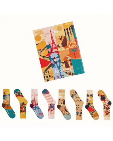 Vier Paar Socken, inspiriert von legendären Orten, bringen Fernweh direkt in deinen Alltag.