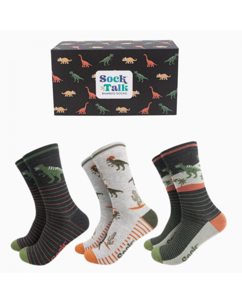 Grosses Maul, kurze Arme – aber richtig starke Socken. Die T-Rex Geschenkbox mit 3 Paar Herren Bambus Socken bringt Dino-Power und Komfort auf ein neues Level. Perfekt für Männer mit Humor, Stil und einer Schwäche für alles, was brüllt.
