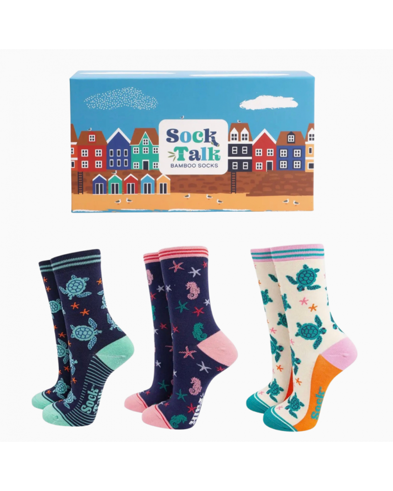 Damen Geschenkbox „Sea Life“ – 3 Paar Bambus Socken mit Meeres-Charme