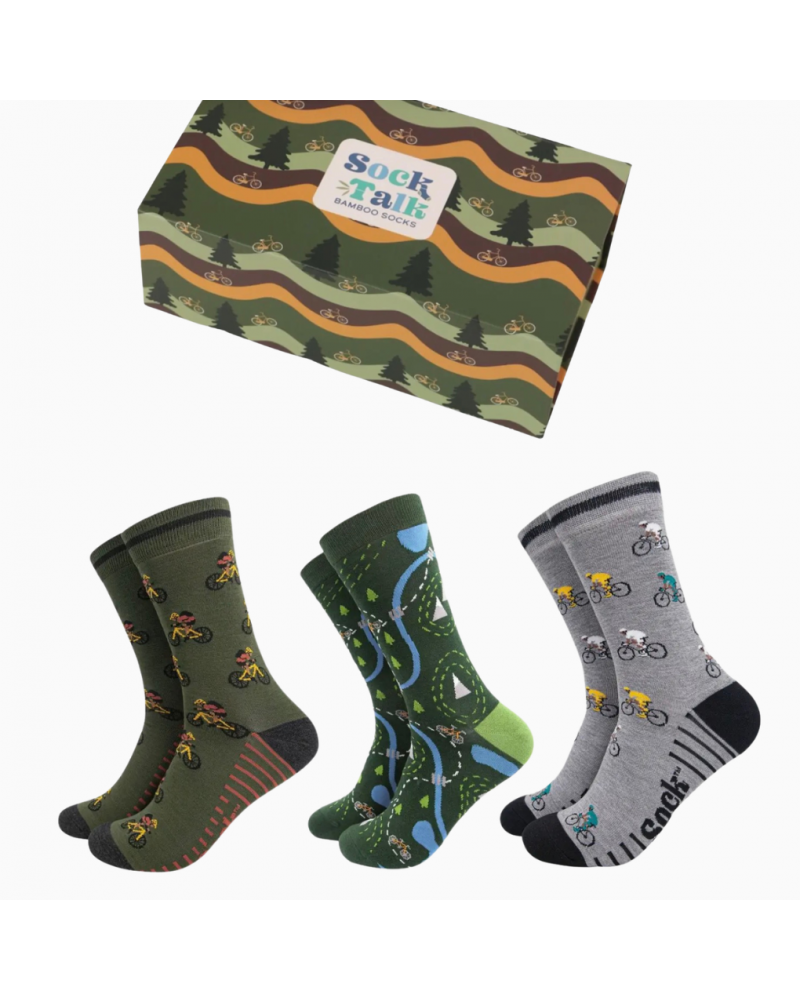 Herren Geschenkbox „Mountainbike“ – 3 Paar Bambus Socken für echte Trail-Fans