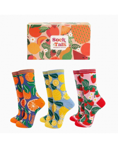 Damen Geschenkbox „Summer Fruits“ – 3 Paar Bambus Socken mit Gute-Laune-Garantie