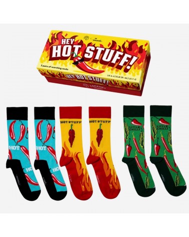 Unisex Geschenkbox „Hey Hot Stuff“ – Ziemlich heiss für ein Paar Socken