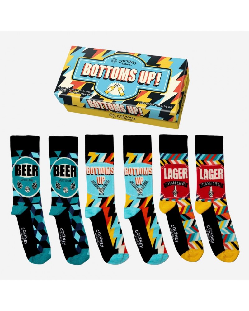 Herren Geschenk Box Socken „Bottoms Up“ – 3 Paar mit Haltung und Humor
