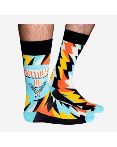 Diese Socken machen keine halben Sachen. Ob entspannt auf der Couch oder unterwegs – „Bottoms Up“ sorgt für Gesprächsstoff auf Knöchelhöhe. Drei unterschiedliche Designs, die sich sehen lassen können und jeden Schritt ein Stück interessanter machen.