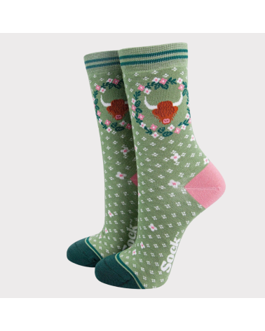 Damen Bambus Socken „Highland Cow“ – Landliebe trifft Komfortzone.