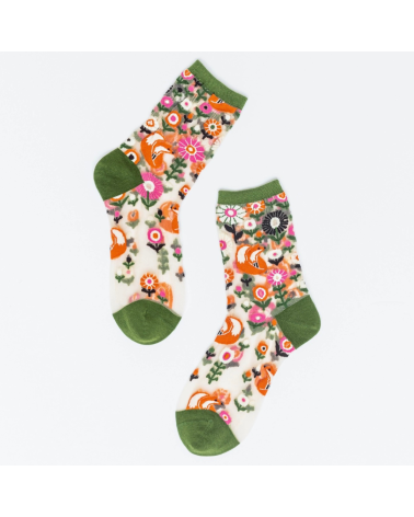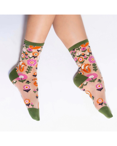 Transparente Damen Socken mit originellem Fuchs-Motiv.