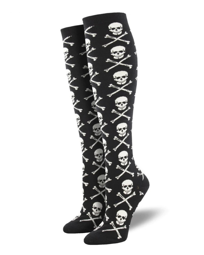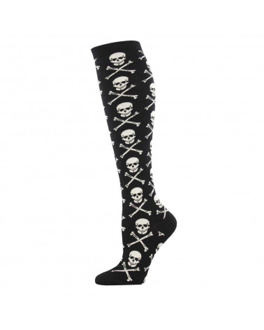 Schrecken der sieben Weltmeere oder einfach ein bisschen Gothic? Unsere mysteriös-eleganten Kniesocken "Crossbones" mit Totenkopf- und Knochen-Motiven zeigen allen, dass mit dir nicht zu spassen ist. Die Damen-Kniesocken sind superbequem und überstehen dank dem Baumwollmischgewebe zahlreiche Waschgänge.