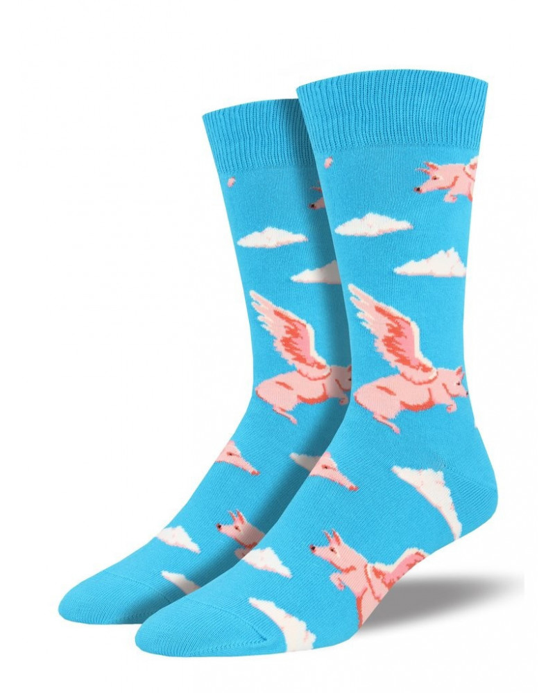 Wenn Schweine fliegen könnten... Dann täten sie das garantiert mit diesen schicken Socken "Flying Pig" an ihren Tretern. Durch das Baumwoll-Mischgewebe weisen die Socken einen hohen Tragekomfort auf, sind formstabil und überstehen viele Waschgänge.