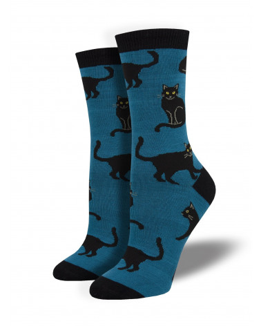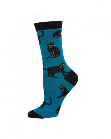 Damen-Bambussocken "Black Cat", blau