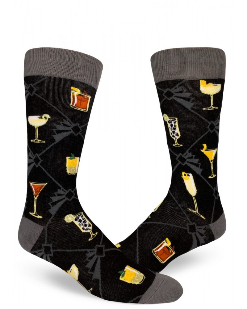 Feierabend in der Cocktailbar. Wenn du statt Bier und Wein auf fruchtige und exotische Cocktail-Drinks stehst, dann bist du mit diesen schicken Socken "Speakeasy Cocktails" in der Bar genau richtig angezogen.