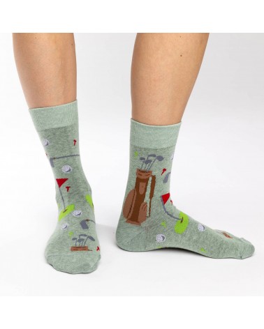 Fühlst du dich auf dem Green zuhause und deinen Caddy siehst du öfter als deine Familie? Dann sin diesen schicken Socken "Golf Green" für Golferinnen genau das richtige für die nächste Partie Golf oder das gemütliche Abhängen im Clubhaus.