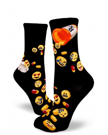 Vor dem Gebrauch dieser Socken fragen Sie bitte erst Ihren Arzt oder Apotheker! Das gewisse Pillen stimmungsaufhellend wirken, ist ja bekanntlich kein Geheimnis. Während man die Medikamente nur in vorgeschriebener Dosierung zu sich nehmen sollte, ist ein Missbrauch dieser schicken Socken "Happy Pills" kaum möglich.