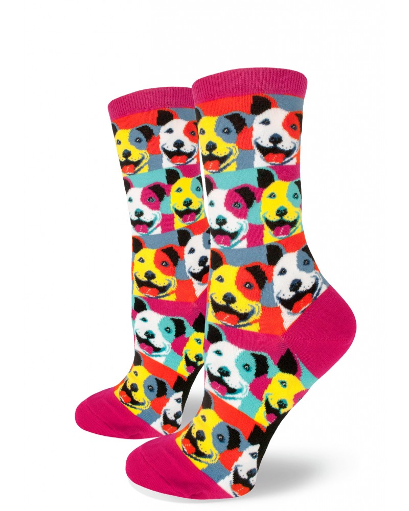 Die Socken sind ein ideales Geschenk für alle Hunde-Besitzernnen und Popart-Fans.