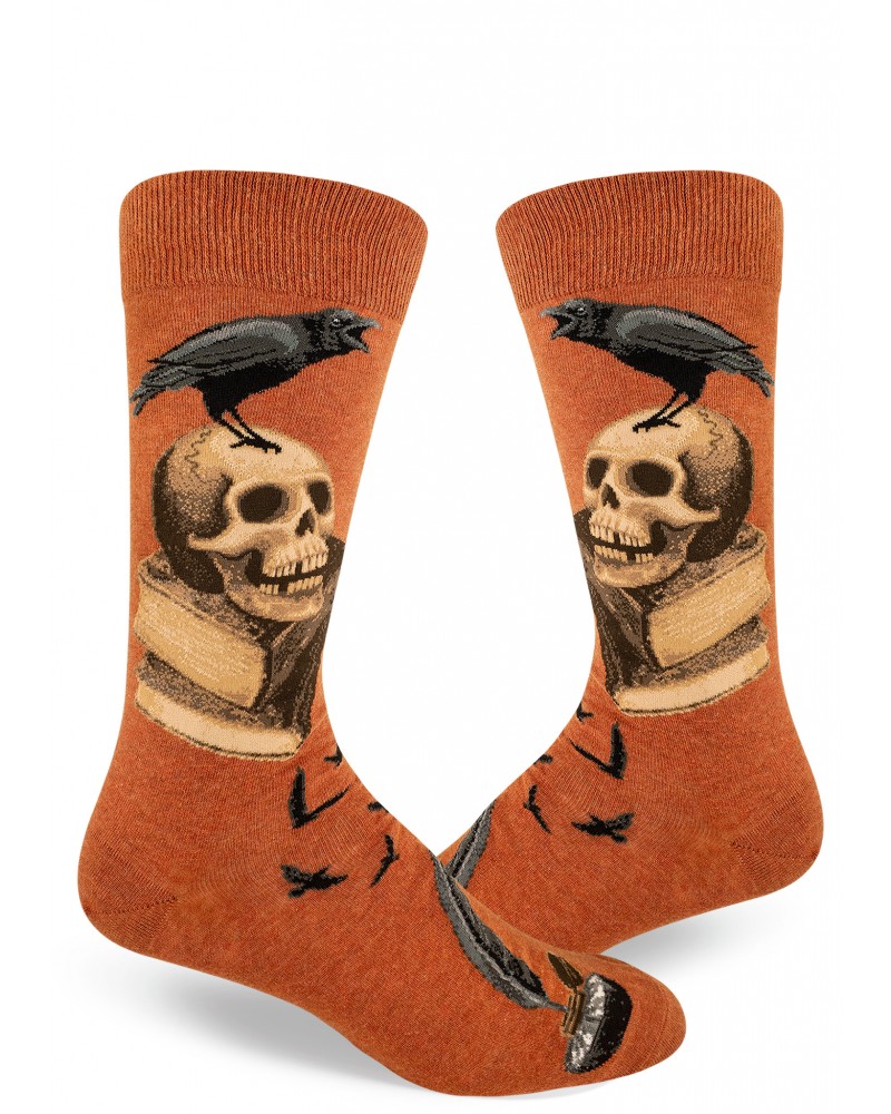 "Ob auch alt und nah dem Grabe," sprach ich, "bist kein feiger Knabe, Grimmer, glattgeschor’ner Rabe, der Du kamst vom Schattenheer – Sprich, welch' stolzen Namen führst Du in der Nacht pluton’schem Heer?" Sprach der Rabe: "Nimmermehr." Das Gedicht "Der Rabe" von Edgar Allan Poe zählt zu den grossen Klassikern der Literaturgeschichte. Mit diesen schicken Socken "Nevermore" zeigst du allen, dass du dich mindestens bei den Klassikern auskennst. Durch das Baumwoll-Mischgewebe weisen die Socken einen hohen Tragekomfort auf, sind formstabil und überstehen viele Waschgänge.